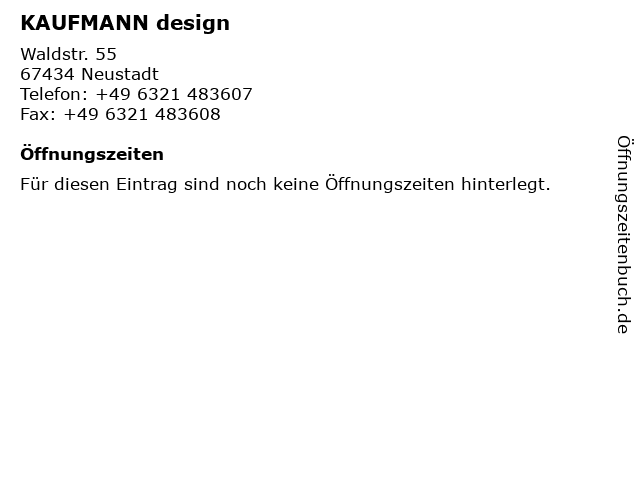| Öffnungszeiten KAUFMANN design in Neustadt anzeigen | |