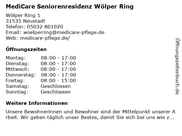 Branchen & Suchbegriffe zu MediCare Seniorenresidenz Wölper Ring:medicare, ring, seniorenresidenz, wölper |