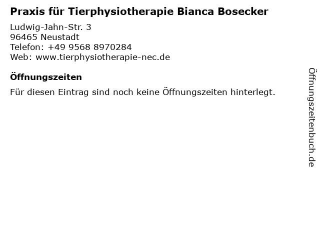 | Praxis für Tierphysiotherapie Bianca Bosecker anrufen | |