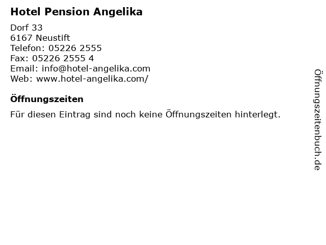 | Öffnungszeiten Hotel Pension Angelika in Neustift anzeigen | |