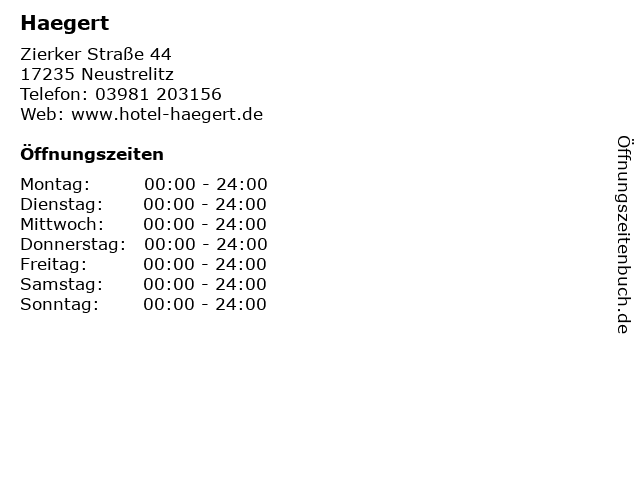 | Öffnungszeiten Haegert in Neustrelitz anzeigen | |