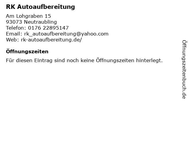 Öffnungszeiten RK Autoaufbereitung in Neutraubling anzeigen | |