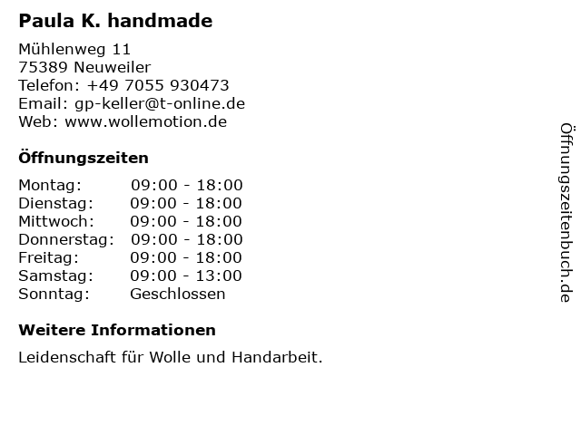 | Adresse Paula K. handmade in Neuweiler anzeigen |