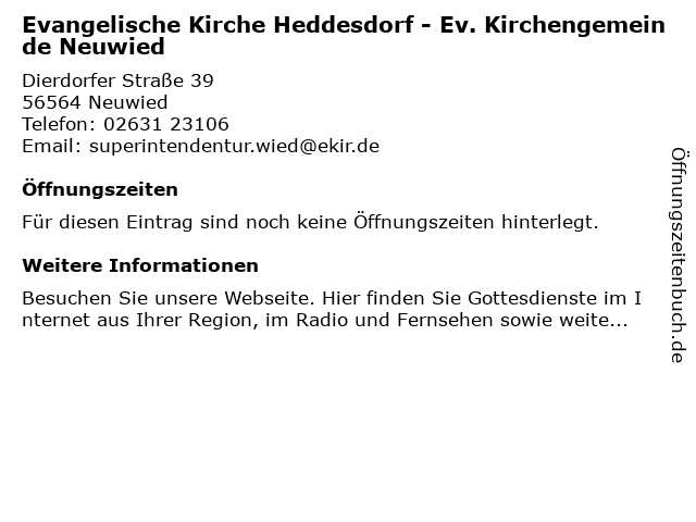 | Evangelische Kirche Heddesdorf - Ev. Kirchengemeinde Neuwied anrufen | |