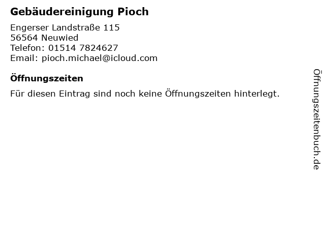| Öffnungszeiten Gebäudereinigung Pioch in Neuwied anzeigen | |