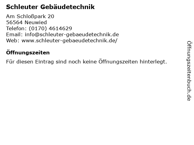 | Öffnungszeiten Schleuter Gebäudetechnik in Neuwied anzeigen | |