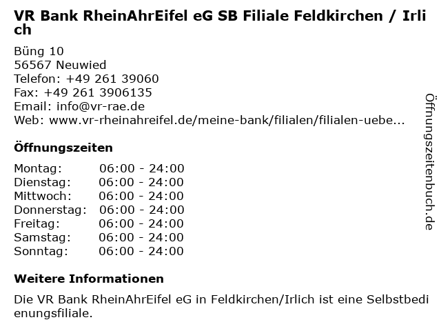 Branchen & Suchbegriffe zu VR Bank RheinAhrEifel eG SB Filiale Feldkirchen / Irlich:altersvorsorge, bank, baufinanzierung, eg, feldkirchen, geldanlage, geldautomat, girokonto, immobilien, irlich, kredit, kreditkarte, rheinahreifel, sb, versicherung, vr |