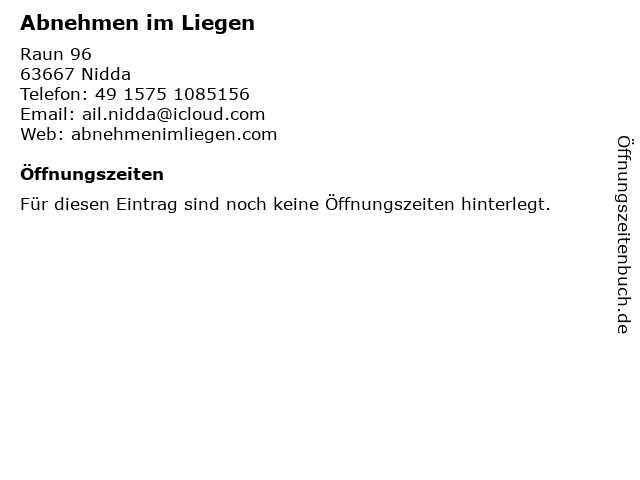 | Öffnungszeiten Abnehmen im Liegen in Nidda anzeigen | |