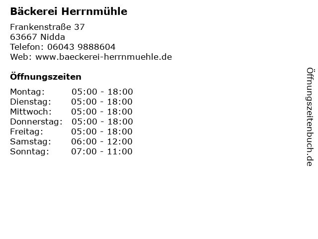 | Öffnungszeiten Bäckerei Herrnmühle in Nidda anzeigen | |