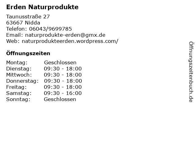 | Öffnungszeiten Erden Naturprodukte in Nidda anzeigen | |