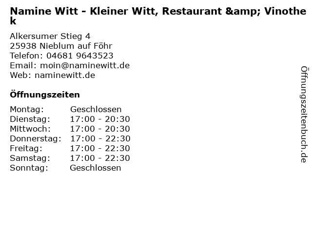 Branchen & Suchbegriffe zu Namine Witt - Kleiner Witt, Restaurant & Vinothek:bistro, essen, fisch, fischspezialitäten, fleischspezialitäten, gerichte, getränke, kleiner, krabben, namine, restaurant, speisen, vegan, vinothek, witt |