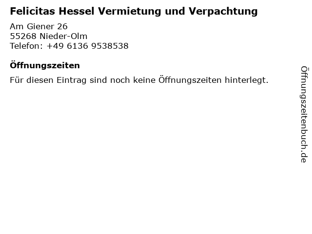 | Felicitas Hessel Vermietung und Verpachtung anrufen | |