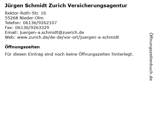 | Jürgen Schmidt Zurich Versicherungsagentur anrufen | |