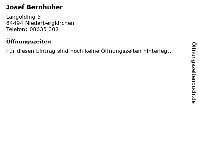 | Öffnungszeiten Josef Bernhuber in Niederbergkirchen anzeigen | |
