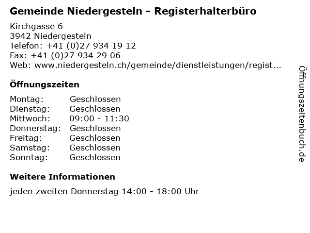 Branchen & Suchbegriffe zu Gemeinde Niedergesteln - Registerhalterbüro:amt, behörde, gemeinde, niedergesteln, registerhalterbüro, verwaltung |