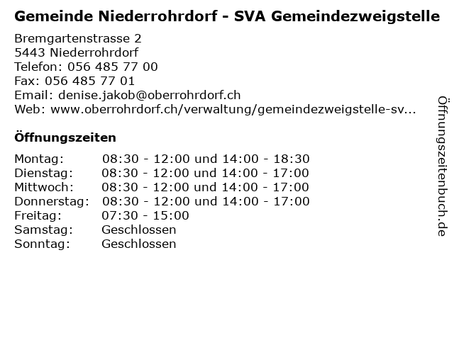 Branchen & Suchbegriffe zu Gemeinde Niederrohrdorf - SVA Gemeindezweigstelle:amt, behörde, gemeinde, gemeindezweigstelle, niederrohrdorf, sva, verwaltung |
