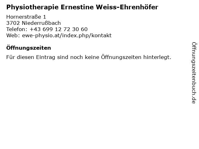 | Physiotherapie Ernestine Weiss-Ehrenhöfer anrufen | |