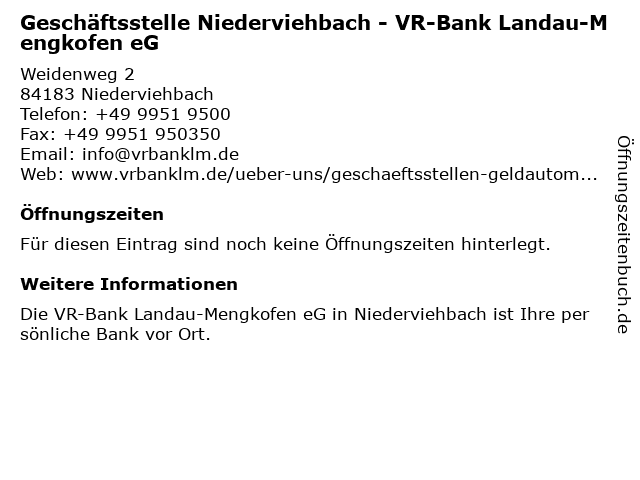 | Geschäftsstelle Niederviehbach - VR-Bank Landau-Mengkofen eG anrufen | |
