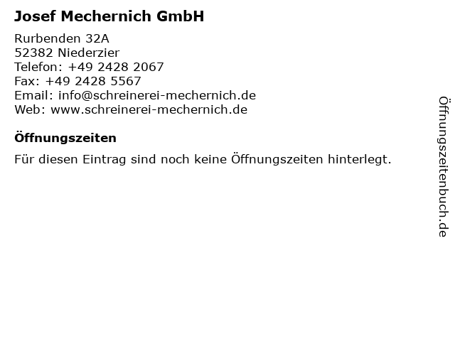| Öffnungszeiten Josef Mechernich GmbH in Niederzier anzeigen | |