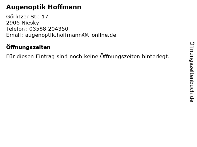 | Öffnungszeiten Augenoptik Hoffmann in Niesky anzeigen | |