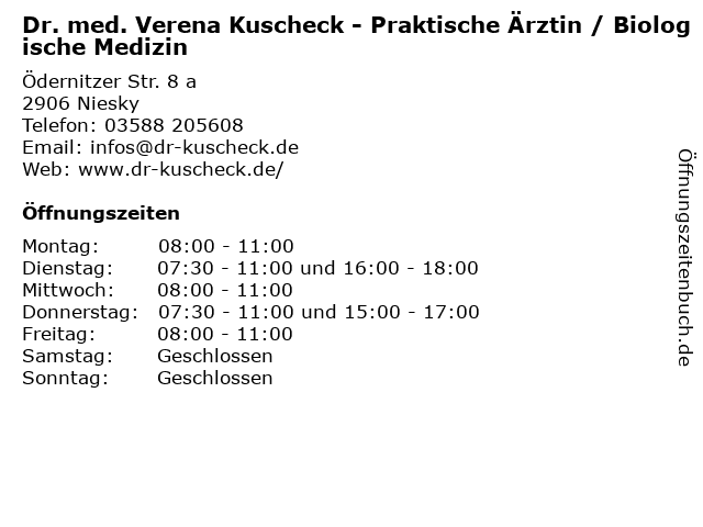 2 Marion Dünzel Fachärztin für Innere Medizin und Pneumologie (Entfernung: 0,31 km) Pestalozzistr. 1, 02906 Niesky 5 Schloßpraxis Konrad Duc Facharzt für Innere Medizin und Kardiologie (Entfernung: 14,70 km) Am Schloß 11, 02829 Schöpstal 6 |
