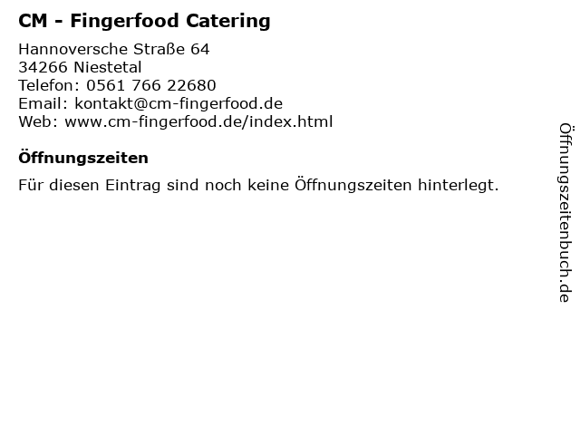 Öffnungszeiten CM - Fingerfood Catering in Niestetal anzeigen | |