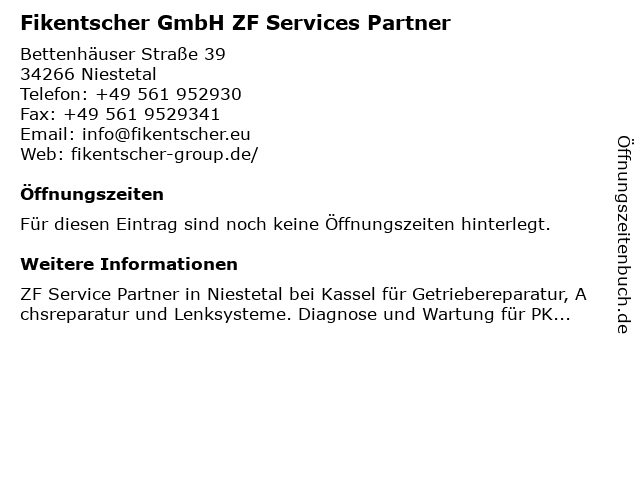 | Fikentscher GmbH ZF Services Partner anrufen | |