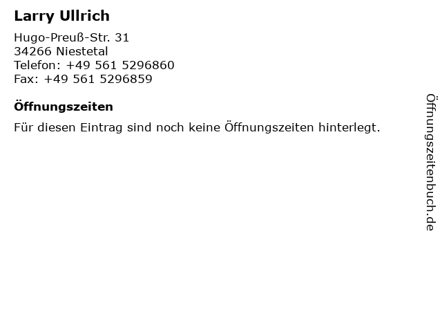| Öffnungszeiten Larry Ullrich in Niestetal anzeigen | |
