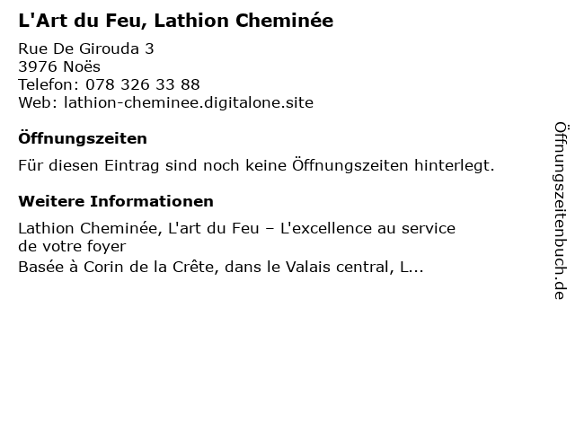 | L'Art du Feu, Lathion Cheminée anrufen | |