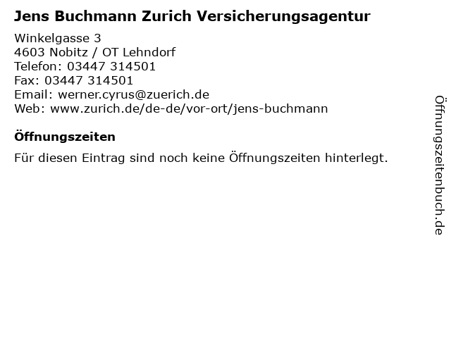 | Jens Buchmann Zurich Versicherungsagentur anrufen | |