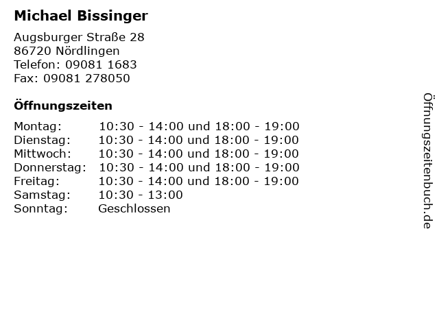 | Öffnungszeiten Michael Bissinger in Nördlingen anzeigen | |