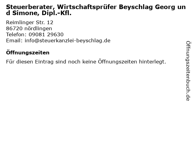 | Steuerberater, Wirtschaftsprüfer Beyschlag Georg und Simone, Dipl.-Kfl. anrufen | |