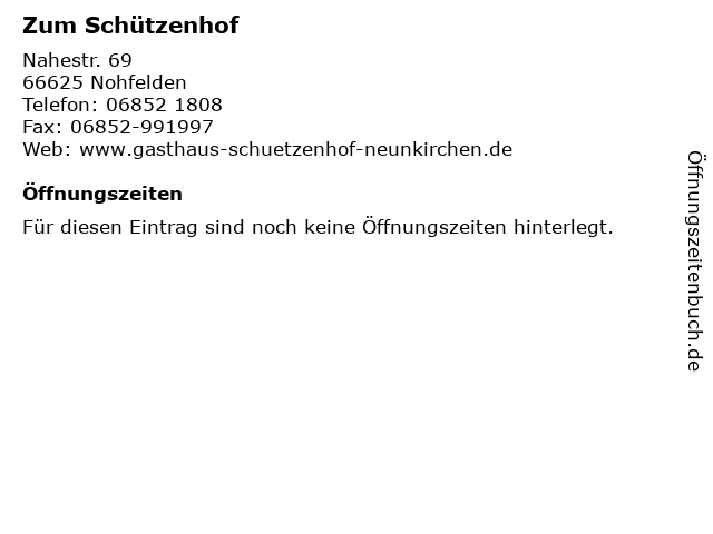 | Öffnungszeiten Zum Schützenhof in Nohfelden anzeigen | |