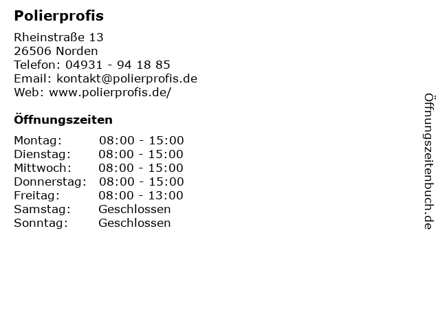 | Öffnungszeiten Polierprofis in Norden anzeigen | |