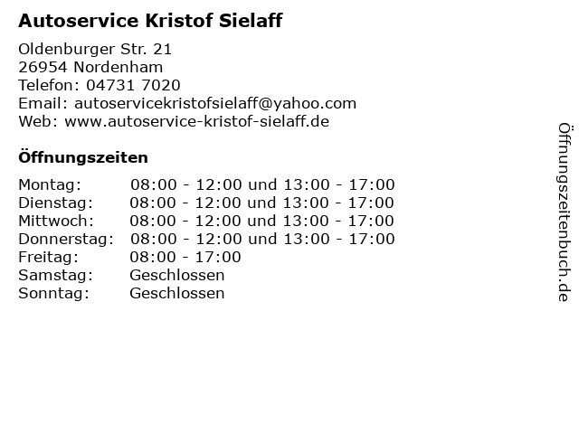 Öffnungszeiten Autoservice Kristof Sielaff in Nordenham anzeigen | |