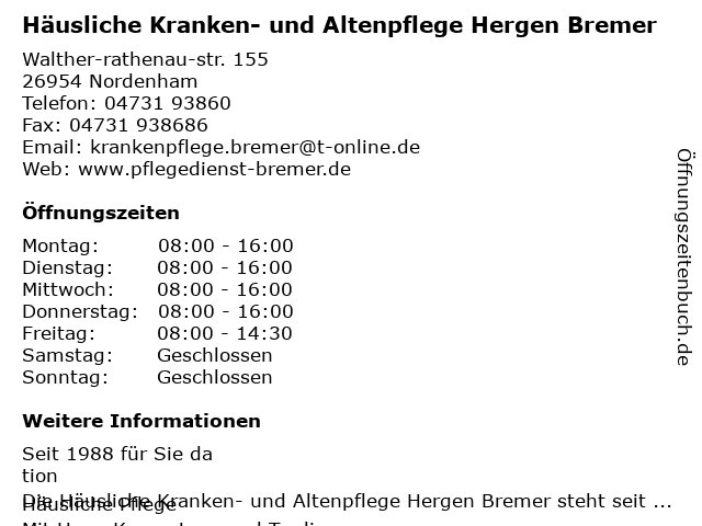 Branchen & Suchbegriffe zu Häusliche Kranken- und Altenpflege Hergen Bremer:altenpflege, bremer, hergen, häusliche, kranken |
