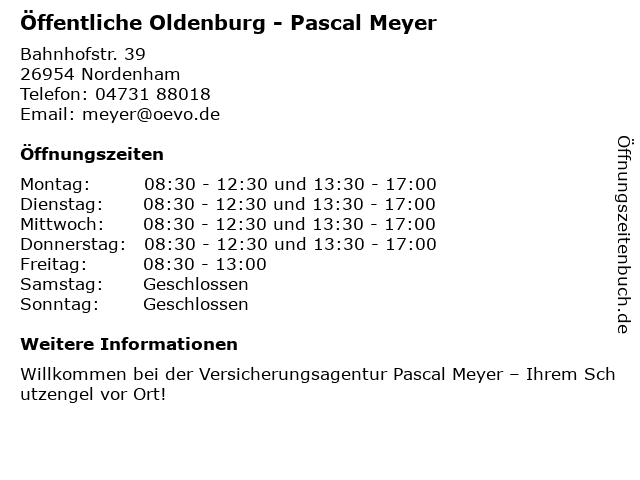 Branchen & Suchbegriffe zu Öffentliche Oldenburg - Pascal Meyer:meyer, pascal, öffentliche |
