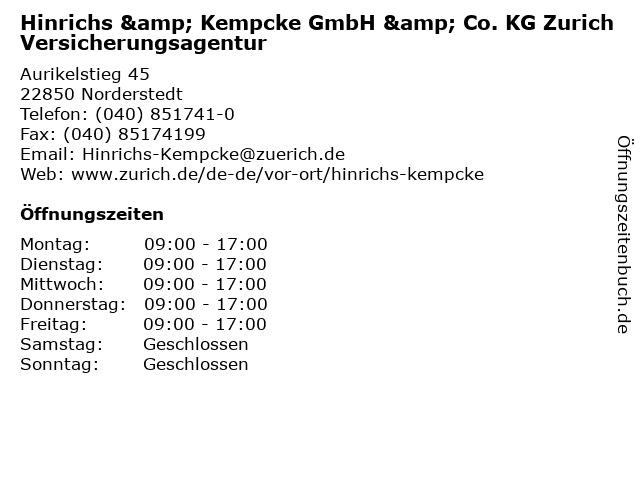 Branchen & Suchbegriffe zu Hinrichs & Kempcke GmbH & Co. KG Zurich Versicherungsagentur:hinrichs, kempcke, police, risiko, schaden, schutz, versicherung, versicherungsagentur, zurich |