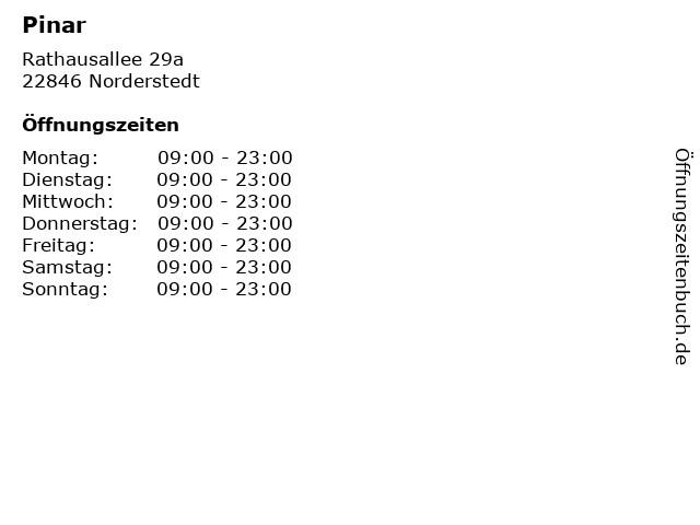 | Öffnungszeiten Pinar in Norderstedt anzeigen | |