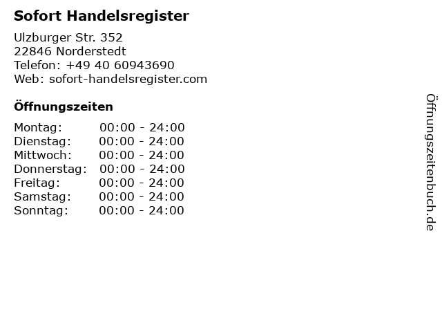 | Öffnungszeiten Sofort Handelsregister in Norderstedt anzeigen | |