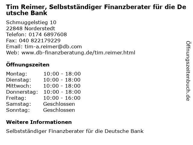 Branchen & Suchbegriffe zu Tim Reimer, Selbstständiger Finanzberater für die Deutsche Bank:bank, deutsche, finanzberater, reimer, selbstständiger, tim |