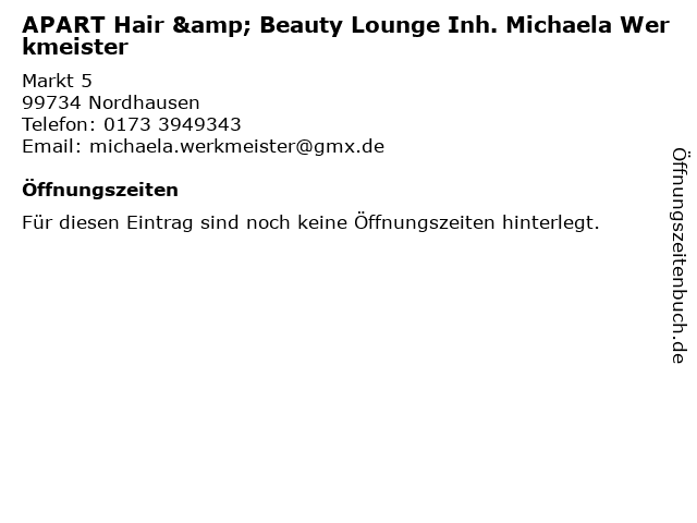 | APART Hair & Beauty Lounge Inh. Michaela Werkmeister anrufen | |