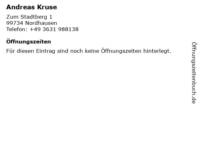 | Öffnungszeiten Andreas Kruse in Nordhausen anzeigen | |