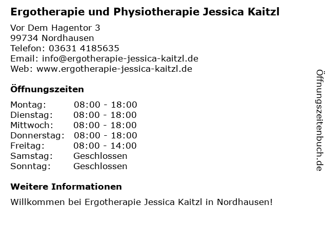3 LoEgo-Therapiezentrum für Logopädie & Ergotherapie (Entfernung: 0,97 km) Bahnhofstr. 20a, 99734 Nordhausen 5 Praxis für Ergotherapie Dagmar Bornschein-Heidicke (Entfernung: 5,58 km) Rudolf-Breitscheid-Str. 2 A, 99762 Niedersachswerfen 6 |
