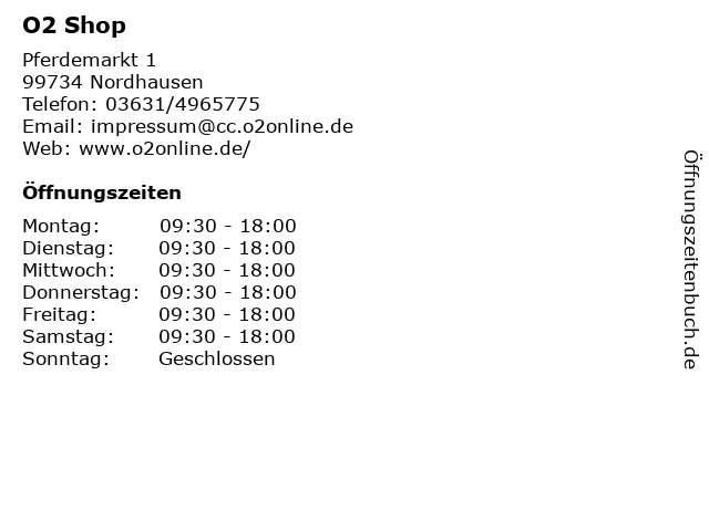 Öffnungszeiten O2 Shop in Nordhausen anzeigen