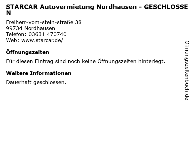 | STARCAR Autovermietung Nordhausen - GESCHLOSSEN anrufen | |