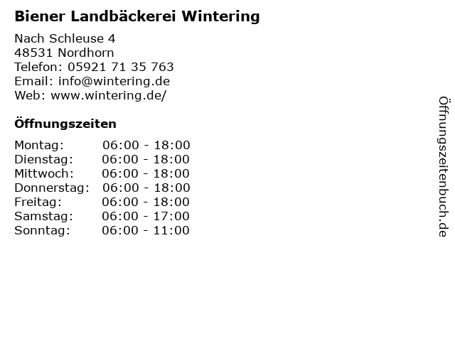 Öffnungszeiten Biener Landbäckerei Wintering in Nordhorn anzeigen