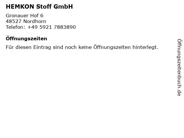 | Öffnungszeiten HEMKON Stoff GmbH in Nordhorn anzeigen | |
