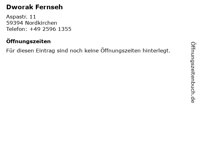 | Öffnungszeiten Dworak Fernseh in Nordkirchen anzeigen | |