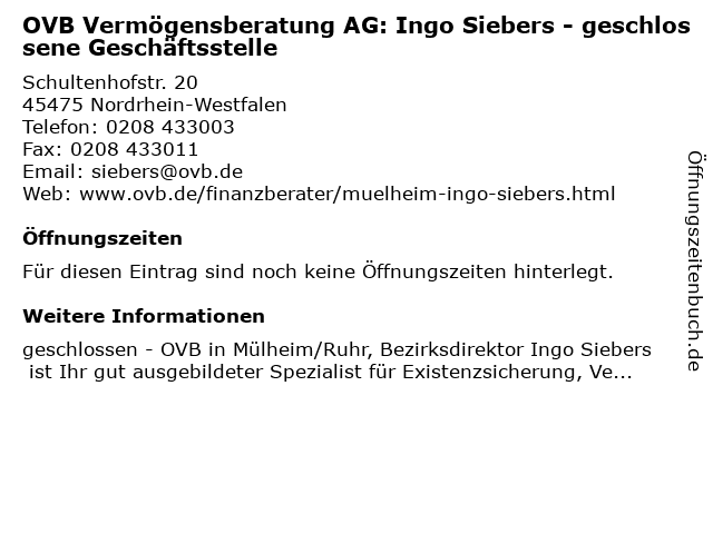 | OVB Vermögensberatung AG: Ingo Siebers - geschlossene Geschäftsstelle anrufen | |